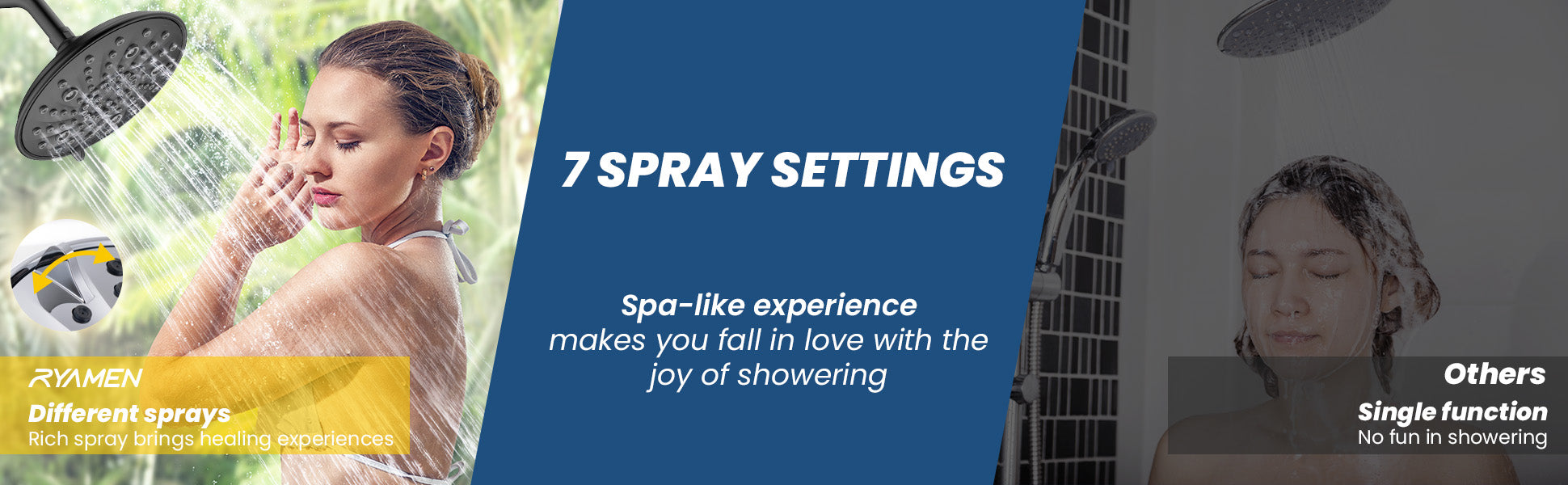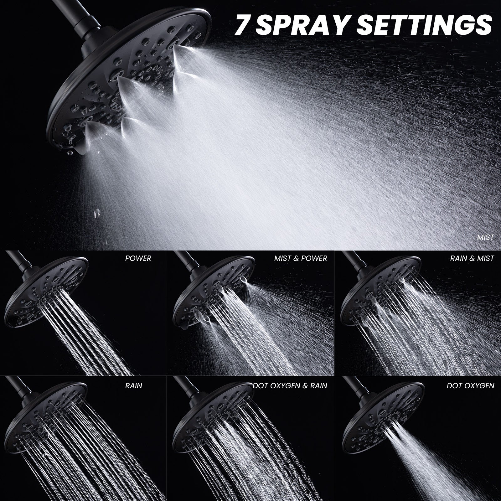 - 7 Spray Settings: Including Rain, Dot Oxygen, Rain & Dot Oxygen, Rain & Mist, Mist, Power, and Rain & Power. Each mode offers your family a luxurious experience.