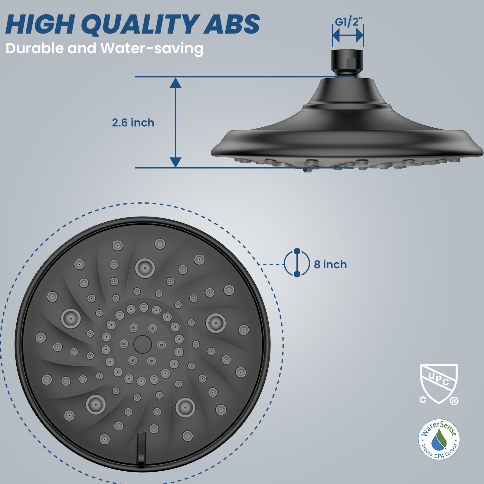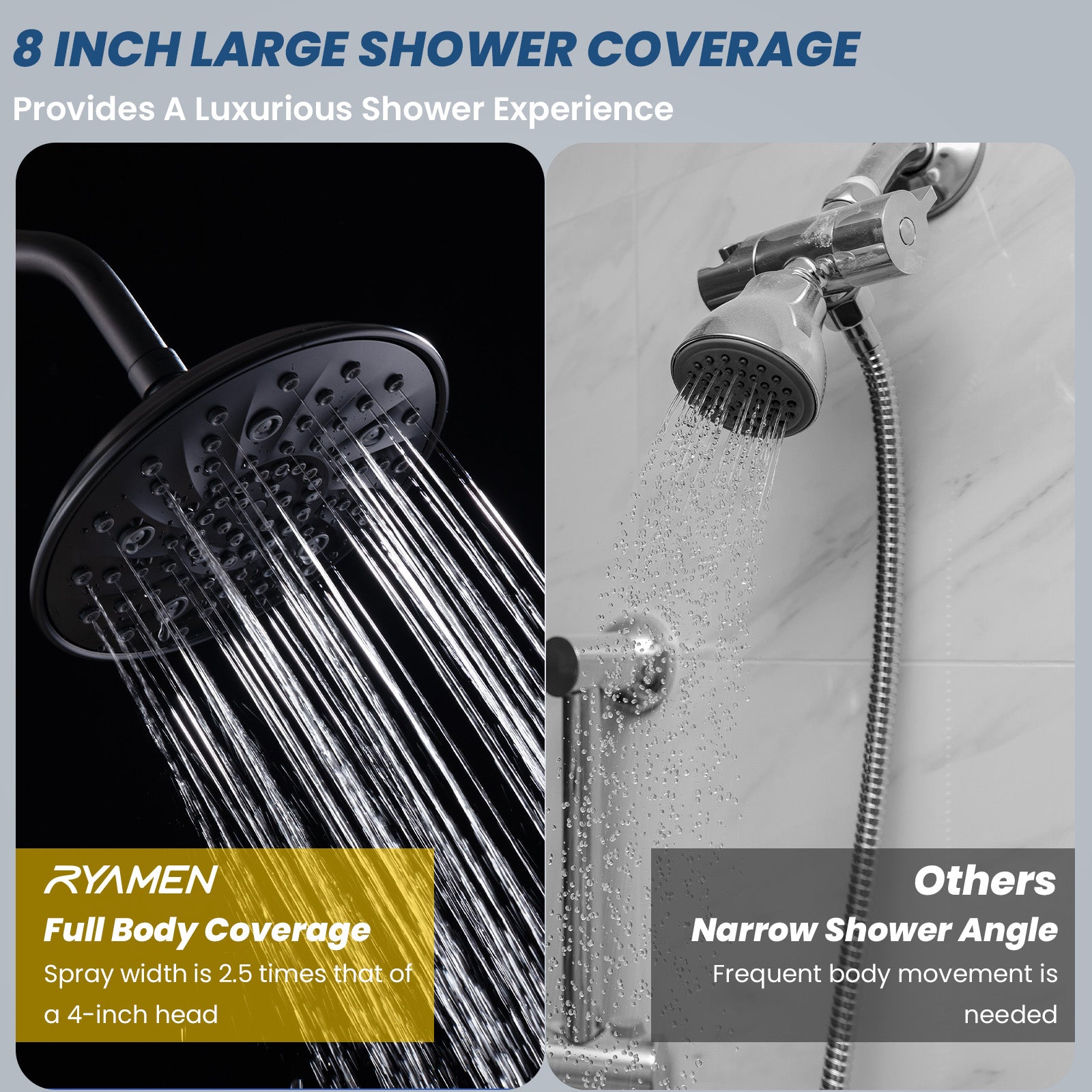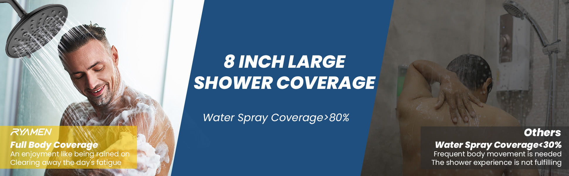 - 8-Inch Large Panel: Provides full-body coverage with a spray width 2.5 times that of a 4-inch head, so you don’t need to move your body while showering.