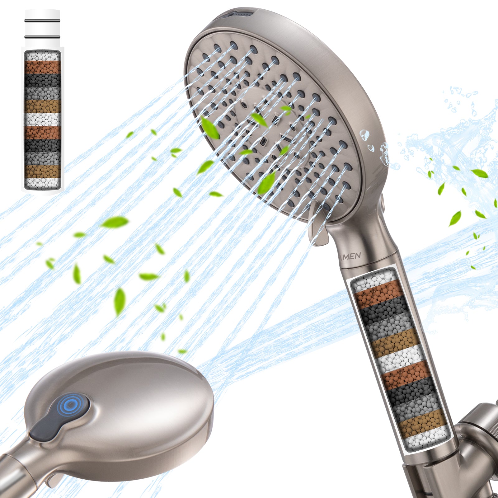 - 【High Pressure & Water Saving】: This filtered shower head with handheld delivers high-pressure streams even in low-flow homes, and saving up to 30% water. Easy-clean nozzles prevent clogs for a spa-like experience every time