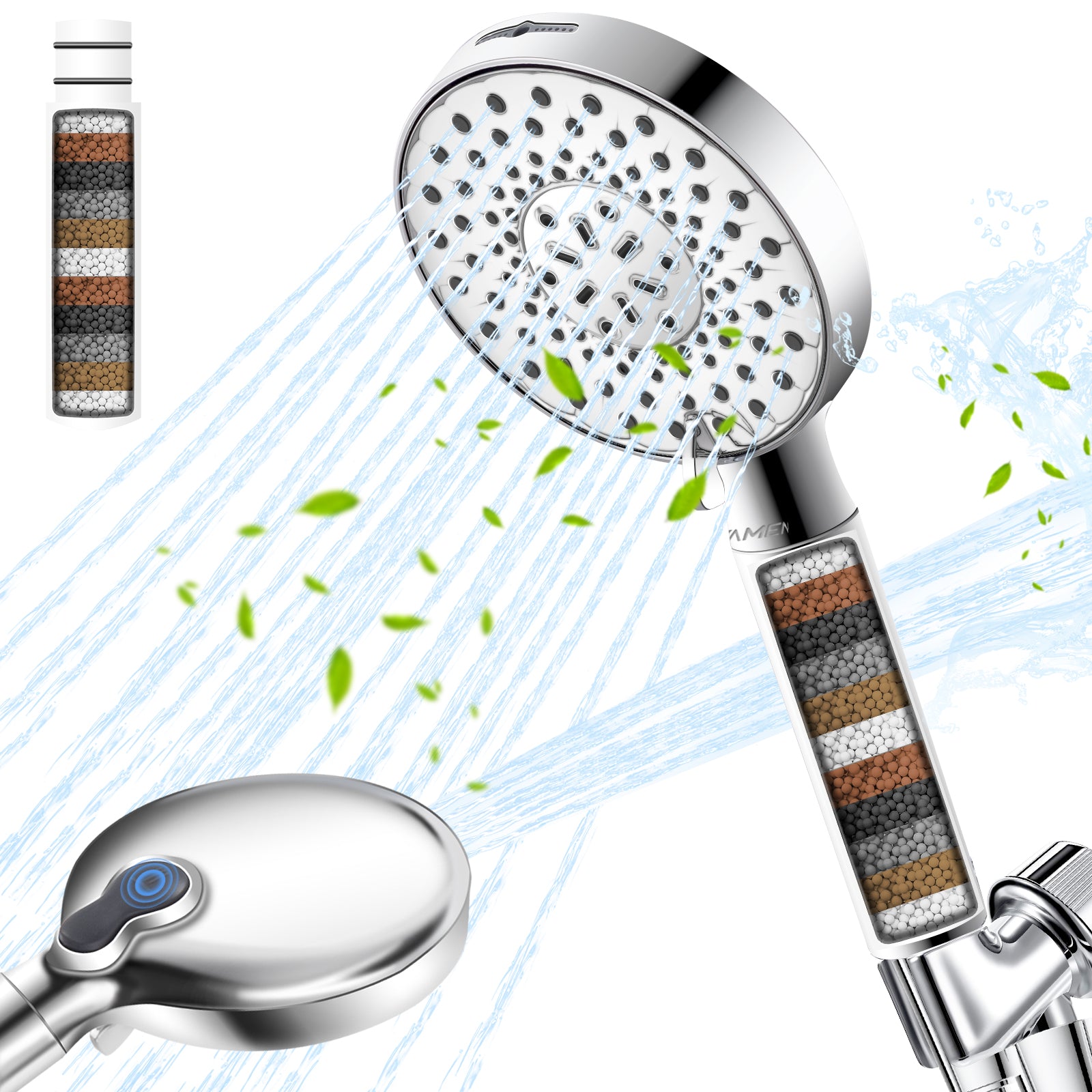 - 【Purify the Water & Skin Protection】: Built with a multi-layer filtration system using KDF, VC balls, carbon balls and more to soften the hardness of city water. Ryamen filtered shower head removes up to 99% chlorine, heavy metals (lead, mercury), bad smells (like sulfur and rust) and impurities- while infusing skin-friendly minerals. Our water softener shower head helps soothe dry, itchy skin and keeps hair healthy. Perfect for babies, women and sensitive skin. To extend your shower enjoyment, we include 1 extra replacement filter for free, which you can get cleaner water for longer. Replace the filter every 3–6 months depending on your water quality