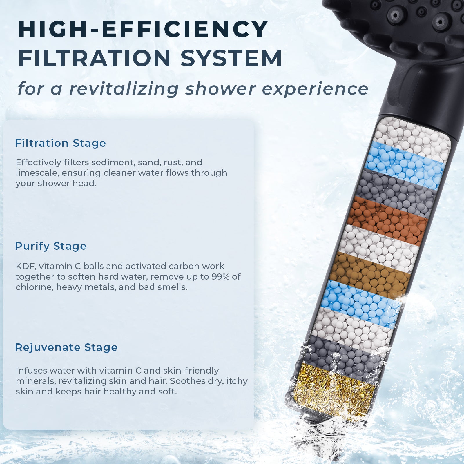 - Built-In Filtration for Skin & Hair Care: Equipped with an internal filter that helps reduce chlorine in shower water. Filtered shower head povides a cleaner, gentler shower experience to support healthier skin and smoother hair for daily use.